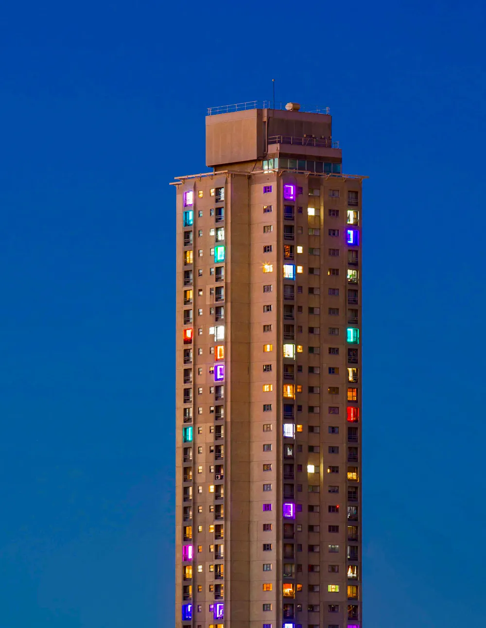 One of the ways that residents are speaking up is by making their presence known on Sydney’s skyline. In September 2017, residents in the tallest of Waterloo’s towers, Matavai and Turanga, installed coloured lights in their apartment windows to make a statement: “We live here”. The residents’ efforts are chronicled in a new ABC documentary, There Goes Our Neighbourhood.